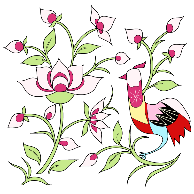 陕北志丹刺绣鸡与花草符号